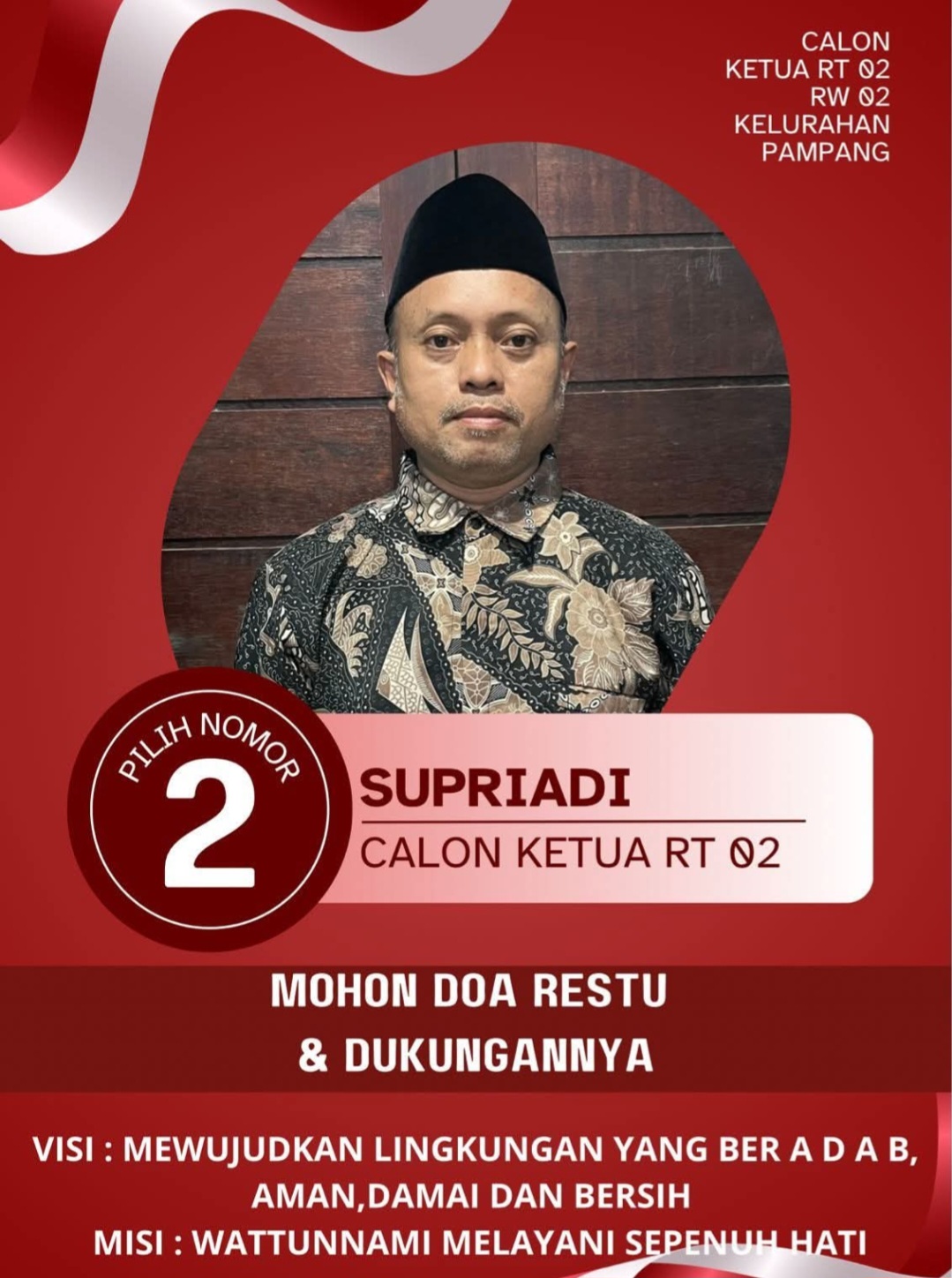 Salah satunya adalah Supriadi, yang resmi menyatakan diri sebagai calon Ketua RT 02 RW 02.